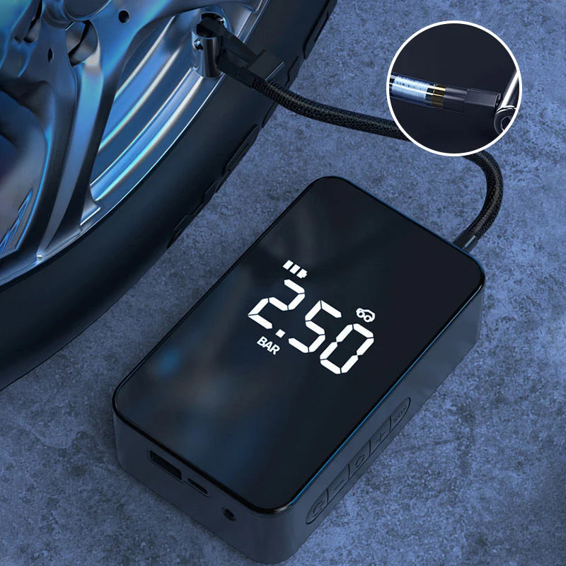 Este inflador portátil permite inflar neumáticos de forma rápida y precisa, ideal para viajes largos o emergencias. La función de apagado automático detiene el inflado al alcanzar la presión configurada, evitando sobreinflado y garantizando mayor seguridad.